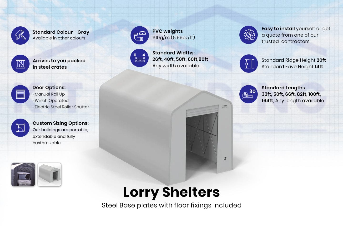 Permanenta, semipermanenta och temporära anläggningar avsedda för affärsförvaring och driftsbehov. Vi erbjuder också Mono Pitch, Lean to strukturer.